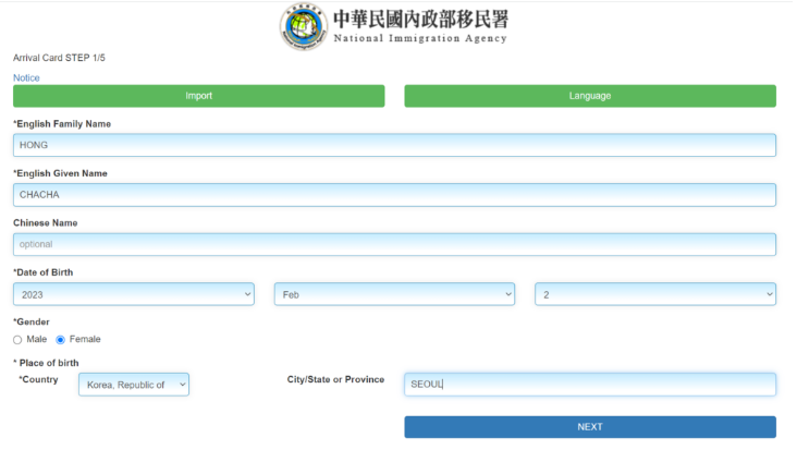 만약 여권 정보와 불일치하는 내용을 입력할 경우, 입국 거부의 원인이 될 수 있습니다. 또한, 대만에 도착하기 최소 3일 전에는 입국신고서를 제출해야 합니다.