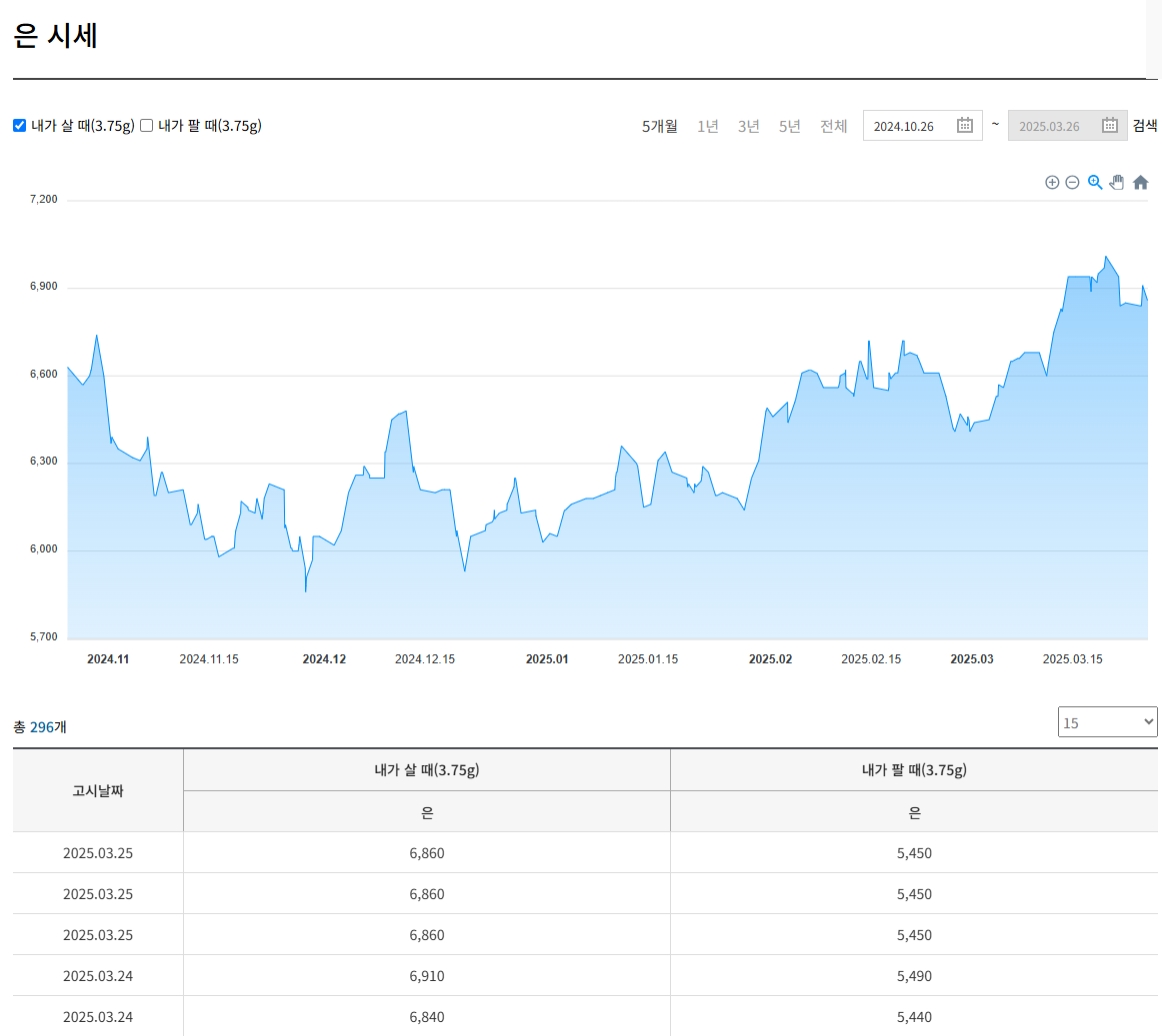 하루에도 몇번씩 바뀌는 은시세는 아래 사이트를 통해 확인할 수 있습니다.