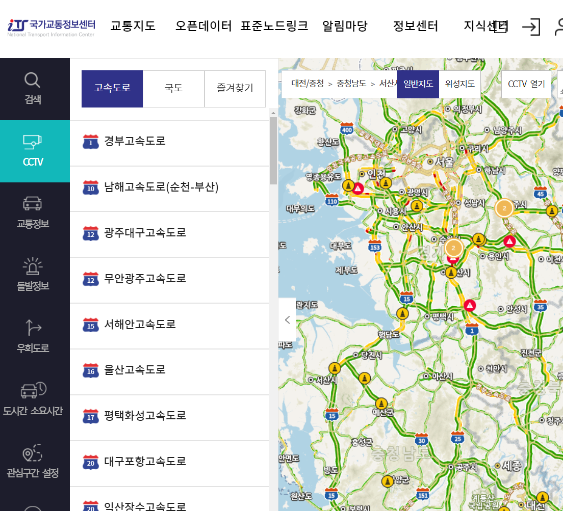 이 시스템을 통해 우리는 cctv 카메라로 막히는 구간을 확인할 수 있으며 우회도로를 통해 사고나 정체 등을 체크해볼 수 있는 것 입니다.